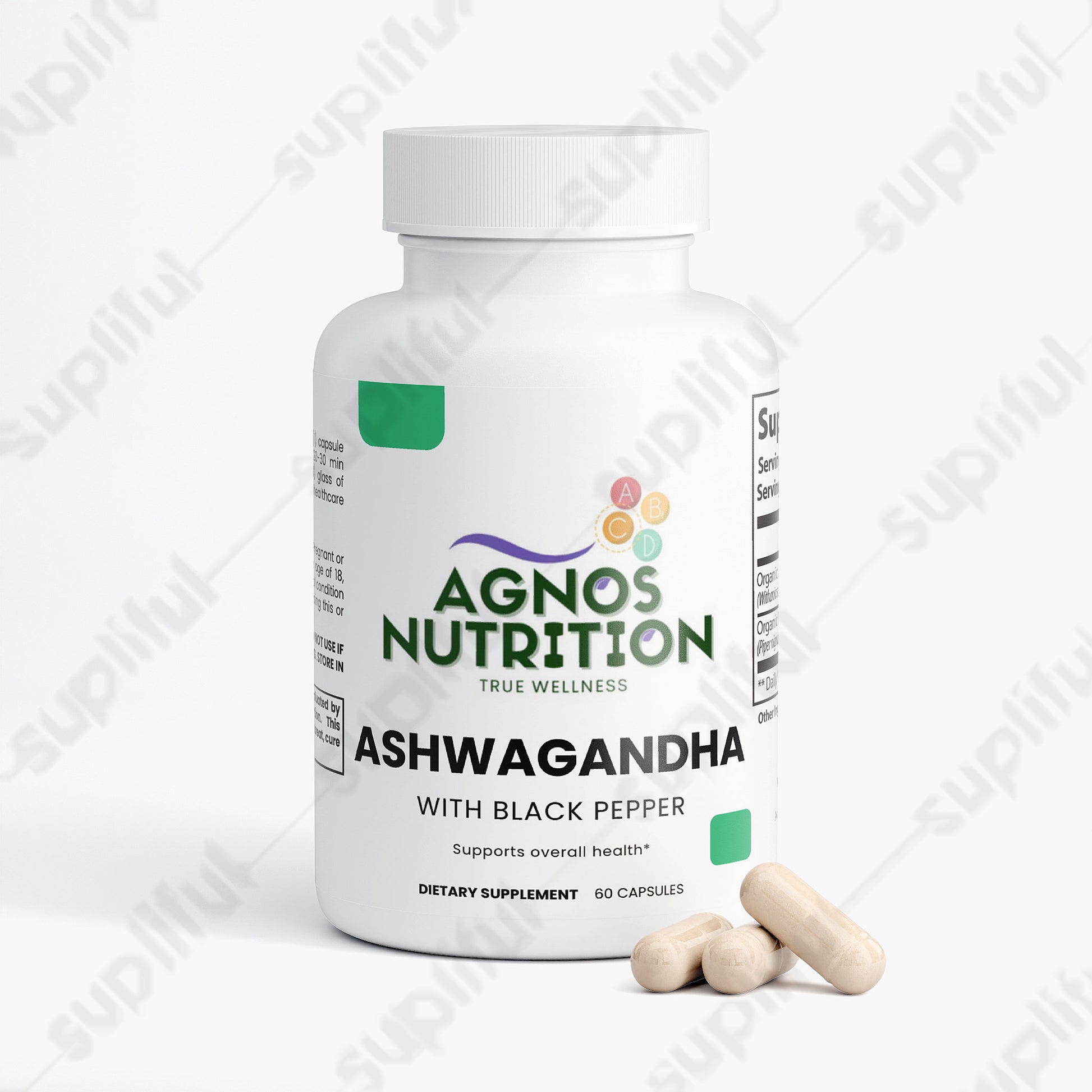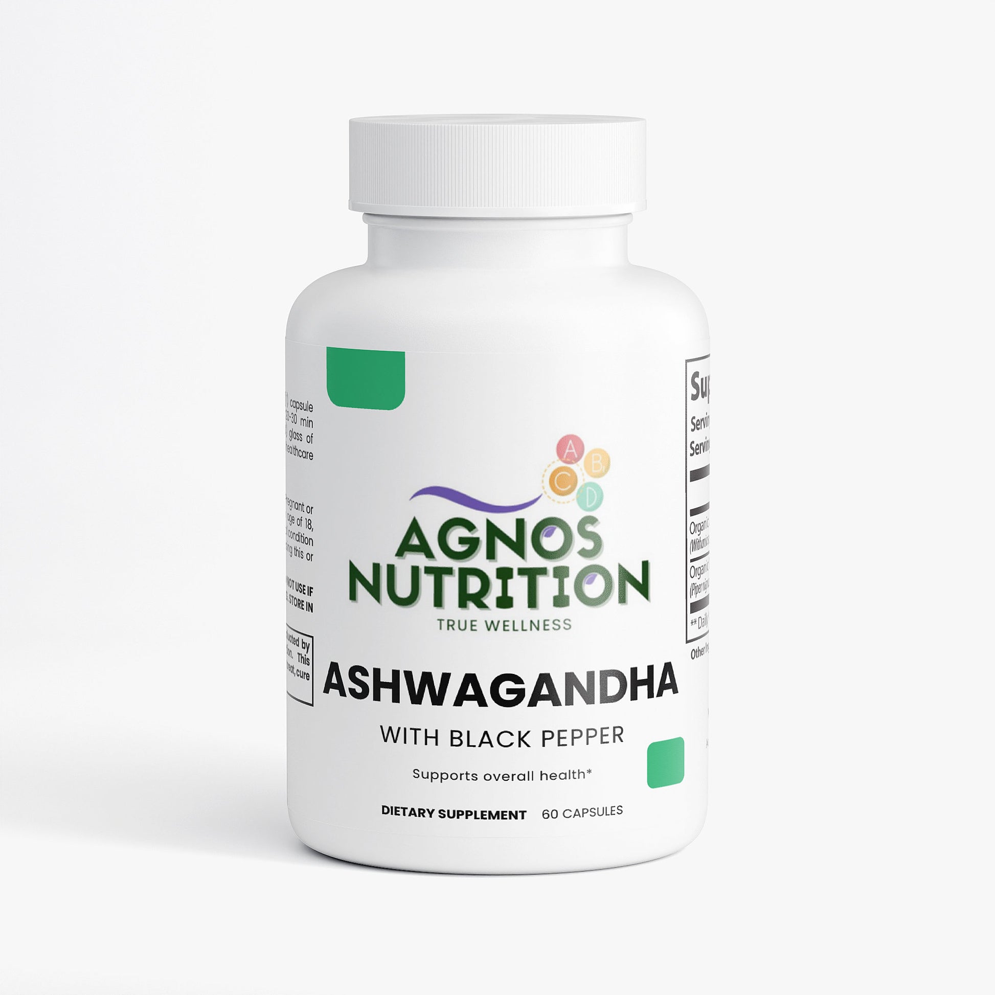 Ingredients: Organic Ashwagandha (Withania somnifera)(root), Organic Black Pepper (Piper nigrum)(fruit), pullulan capsules.