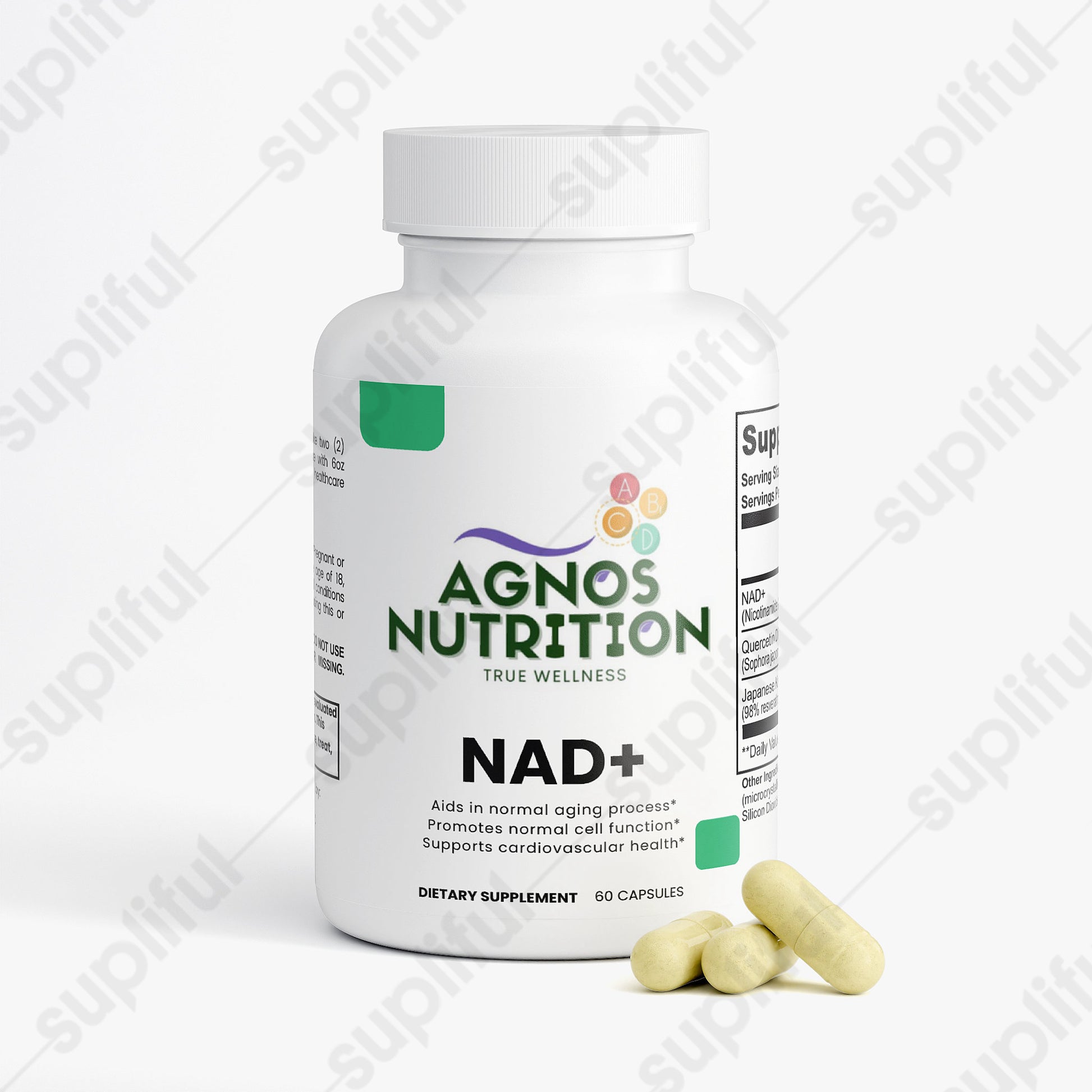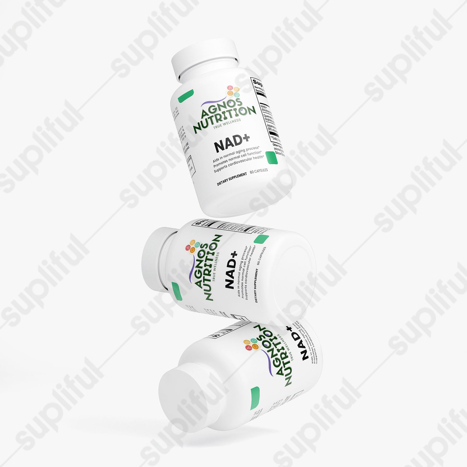Ingredients: NAD+ (Nicotinamide Adenine Dinucleotide) (500 mg), Quercetin Dihydrate Extract (Sophora japonica) (whole flower bud) (250 mg), Japanese Knotweed Extract (98% Resveratrol) (Polygonum cuspidatum) (root) (150 mg), HPMC (vegetable capsule), Microcrystalline Cellulose (MCC), Brown Rice Flour, Olive Oil, Silicon Dioxide, Magnesium Stearate.