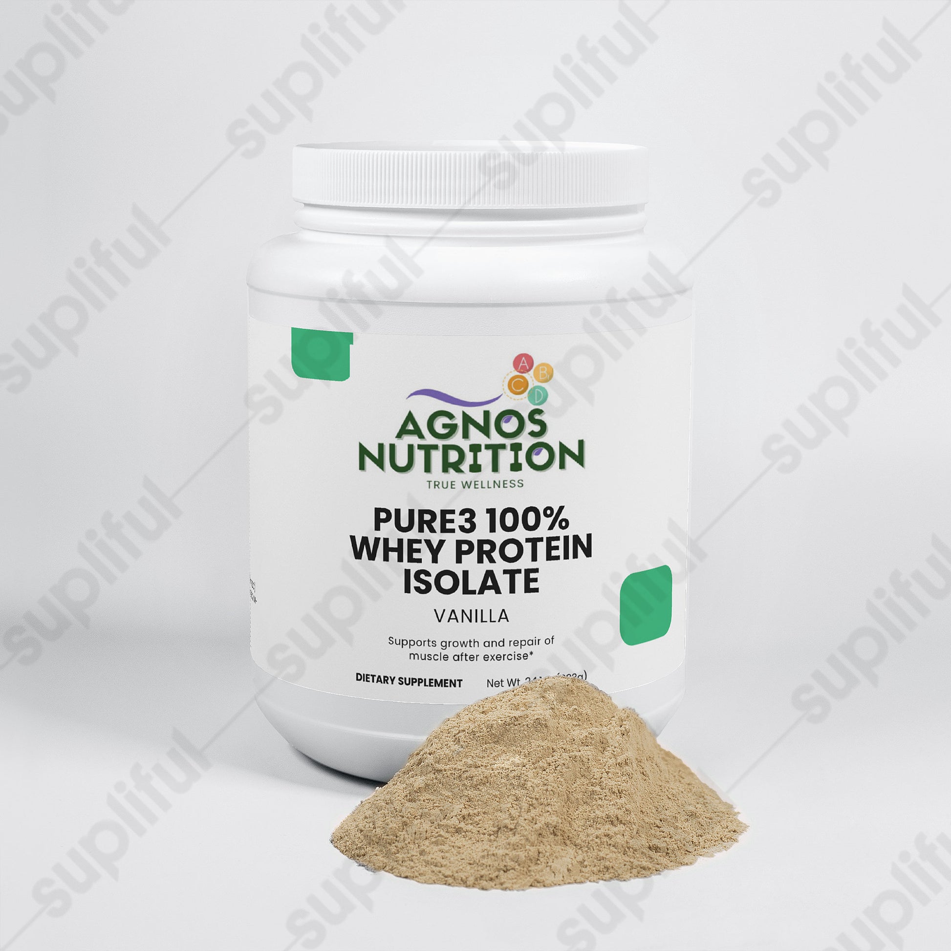 Our Vanilla Whey Protein Isolate is meticulously crafted to support muscle growth and recovery, providing an optimal blend of nutrients for athletes and fitness enthusiasts alike. This premium protein supplement is made with pure whey protein isolate, the purest form of whey available, ensuring maximum protein content with minimal fat and lactose.*